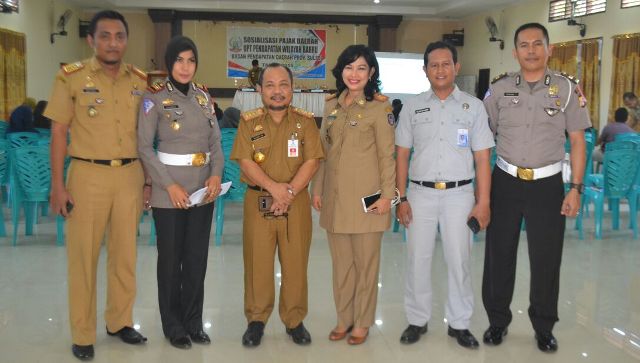 Kepala Bapenda Sulsel Drs. H. Tautoto TR,M.Si didampingi Kepala UPT Pendapatan Wilayah Barru, Dra Yustiati Yusuf, SE, M.Si, Kasat Lantas Polres Barru AKP Darmawati, Perwakilan Jasa Raharja Cabang Barru, Kanit Regiden IPTU Yuntung Tangkelangi, SH dalam sosialisasi tersebut.