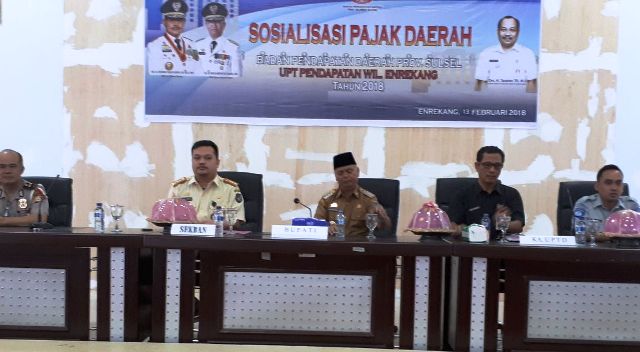 Sekretaris Bapenda Sulsel Kemal Redindo Syahrul Putra SH MH hadir dalam sosialisasi tersebut mewakili Kepala Bapenda Sulsel Drs H. Tautoto TR, M.Si. Kemal membawakan materi sosialisasi pajak daerah dipandu Kepala UPT Pendapatan Wilayah Enrekang Drs Eddy Pappang M.Si.