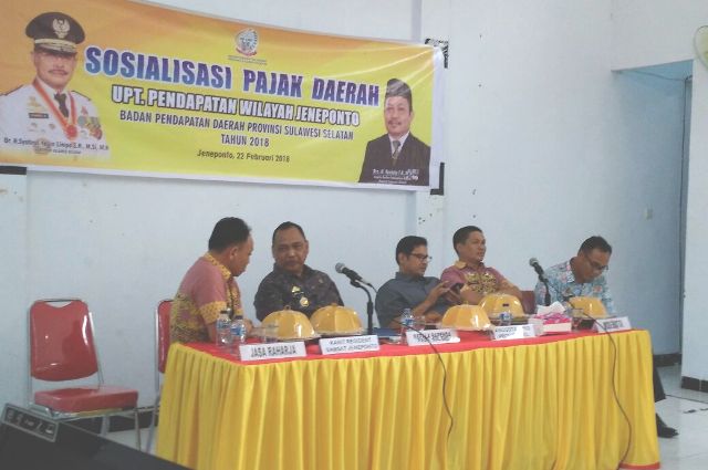 Jeneponto – Kabid Pembinaan dan Pengawasan Badan Pendapatan Daerah (Bapenda) Provinsi Sulsel Moh Hasan SH MH melakukan sosialisasi pajak daerah di Gedung Serba Guna Kantor Camat Batang, Kelurahan Togotogo, Kecamatan Batang, Kamis (22/2). Anggota DPRD Sulsel Hoist Bachtiar juga menghadiri kegiatan tersebut.