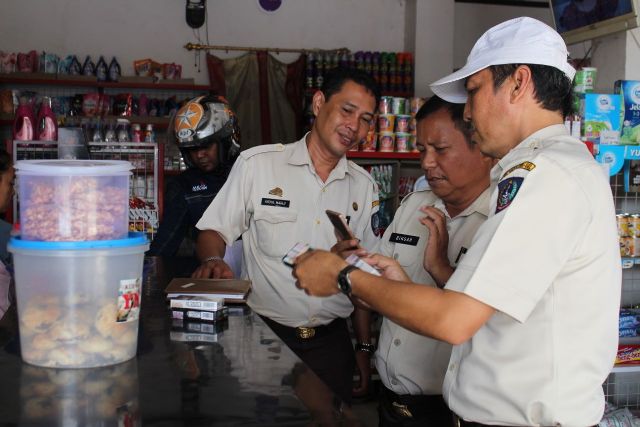 BANTAENG– Unit Pelaksana Teknis Pendapatan (UPTP) Wilayah Bantaeng mendatangi sejumlah toko yang menjual rokok di Kota Bantaeng, Selasa (13/3). Kunjungan ini dilakukan untuk mencari rokok yang tak bercukai resmi sesuai yang dikeluarkan pemerintah pusat.