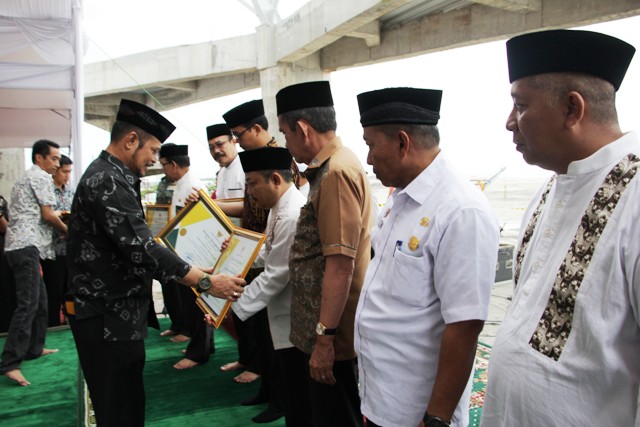 Penghargaan diserahkan oleh Gubernur Sulsel Syahrul YL di Masjid Asmaul Husna 99 Kubah, Kawasan CPI Makassar, Jumat (16/3).
