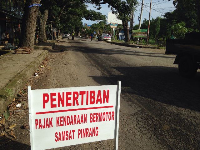 Sementara pengendara jalan yang tidak membawa uang membuat surat pernyataan dan berjanji akan segera membayar pajak di Samsat Pinrang. Operasi penertiban dipimpin Kepala UPT Pendapatan Wilayah Pinrang Drs Ayyub AR dibantu Satlantas Polres Pinrang dan Jasa Raharja Pinrang.