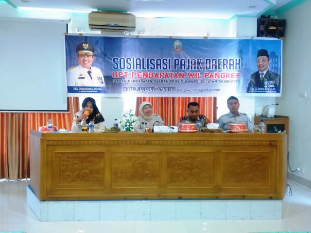 PANGKEP–Unit Pelaksana Teknis (UPT) Pendapatan Wilayah Pangkep menggelar sosialisasi pajak dan layanan unggulan Badan Pendapatan Daerah (Bapenda) Provinsi Sulsel di Hotel Celebes Pangkep, Selasa (28/8).