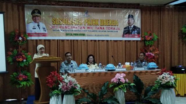 Sosialisasi pajak daerah ini juga dihadiri anggota DPRD Provinsi Sulsel Dan Pongtasik, SH, Kepala UPT Pendapatan Wilayah Tana Toraja Dra Emy Sakka Lebang yang bertindak sebagai moderator, Kanit Regident Polres Tana Toraja Ipda I Ketut Sugarsana, dan Kepala Jasa Raharja Perwakikan Palopo Kamil Agoes, SE.