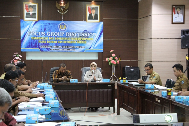 Diskusi bertema sinkronisasi dan koordinasi evaluasi raperda pajak daerah, dan retribusi daerah ini menghadirkan dua pembiacara dari Kemenkeu yakni Kepala Seksi Penyusunan Hasil Sinkronisasi Raperda PDRD Dadang Budi Hartono dan Kepala Seksi Sinkronisasi Raperda Kabupaten II Annas Fikry.