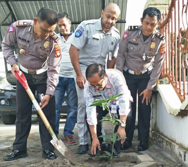 Samsat Makassar Wilayah I dan II langsung menanam pohon pada Rabu (8/1/2020). Kegiatan tersebut, dipimpin Kasi STNK Subdit Regident Ditlantas Polda Sulsel, Kompol Aryo Dwi Wibowo.