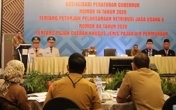 Pergub yang disosialisasikan tersebut yakni Pergub Nomor 14 Tahun 2020 tentang Petunjuk Pelaksanaan Retribusi Jasa Usaha dan Pergub Nomor 64 Tahun 2020 tentang Pajak Daerah Khusus Jenis Pajak Air Permukaan.