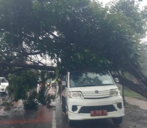 MAKASSAR – Hujan deras disertai angin kencang yang melanda Makassar, Selasa 22 Februari 2022, memakan korban. Sebuah kendaraan samsat keliling milik Samsat Makassar II Utara yang beroperasi di sekitar Makassar Town Square (MTos) Makassar rusak parah tertimpa pohon. Tak ada korban jiwa dalam peristiwa ini.