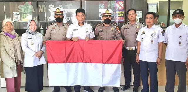 Samsat Jeneponto Bagikan Bendera pada Wajib Pajak
