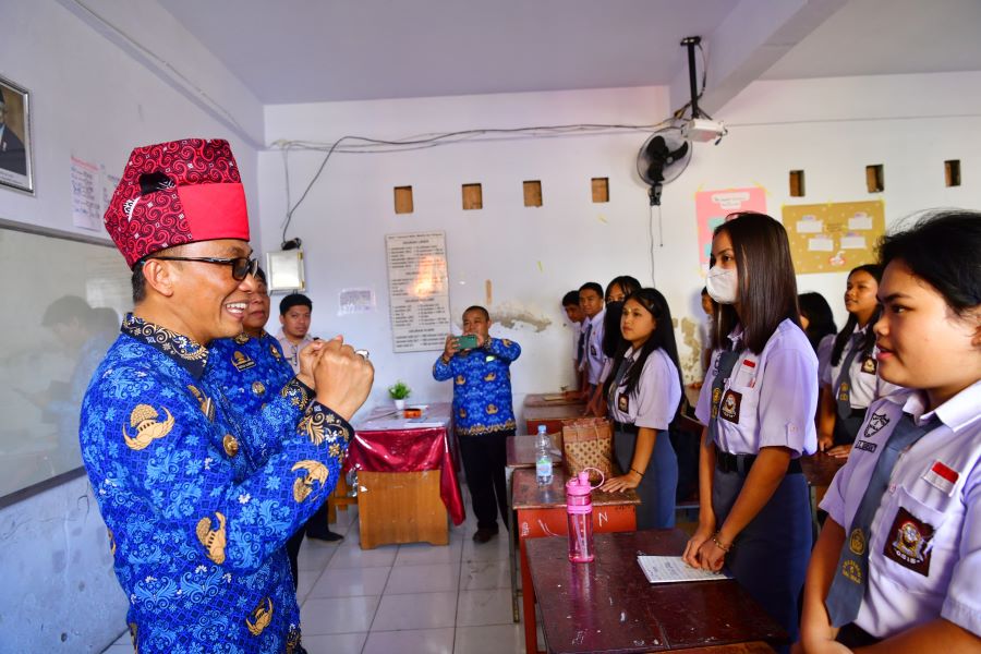 TANA TORAJA – Pj Gubernur Sulawesi Selatan, Prof Zudan Arif Fakrulloh didampingi oleh Bupati Tana Toraja Theofilus Allorerung berkunjung ke SMA Negeri 5 Tana Toraja (Tator) Selasa, 23 Juli 2024.