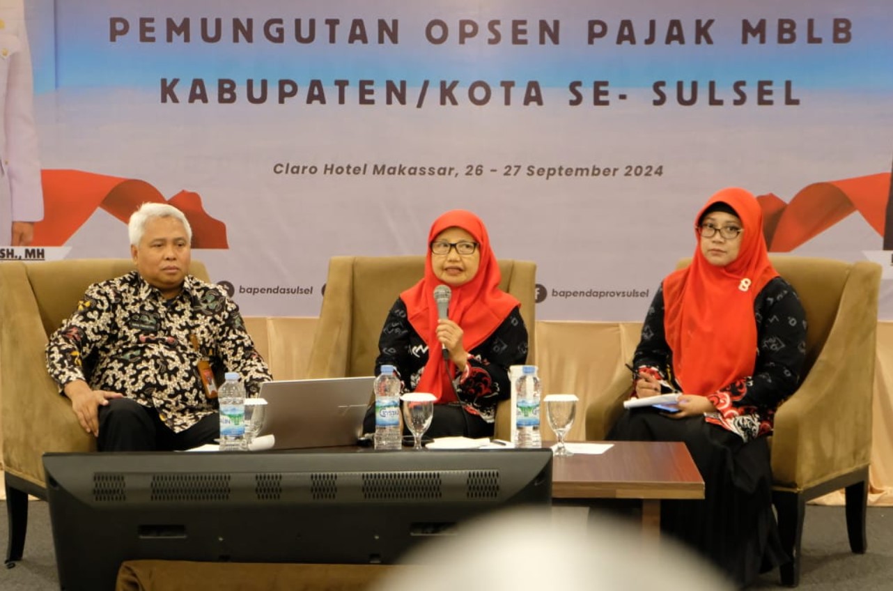 MAKASSAR — Badan Pendapatan Daerah (Bapenda) Provinsi Sulawesi Selatan (Sulsel) melaksanakan Rapat Kerja Evaluasi Penerimaan Pajak Secara Digital dan Asistensi Peraturan Kepala Daerah Opsen Pajak Mineral Bukan Logam dan Batuan (MBLB) di Hotel Claro Makassar, Kamis (26/09/2024)