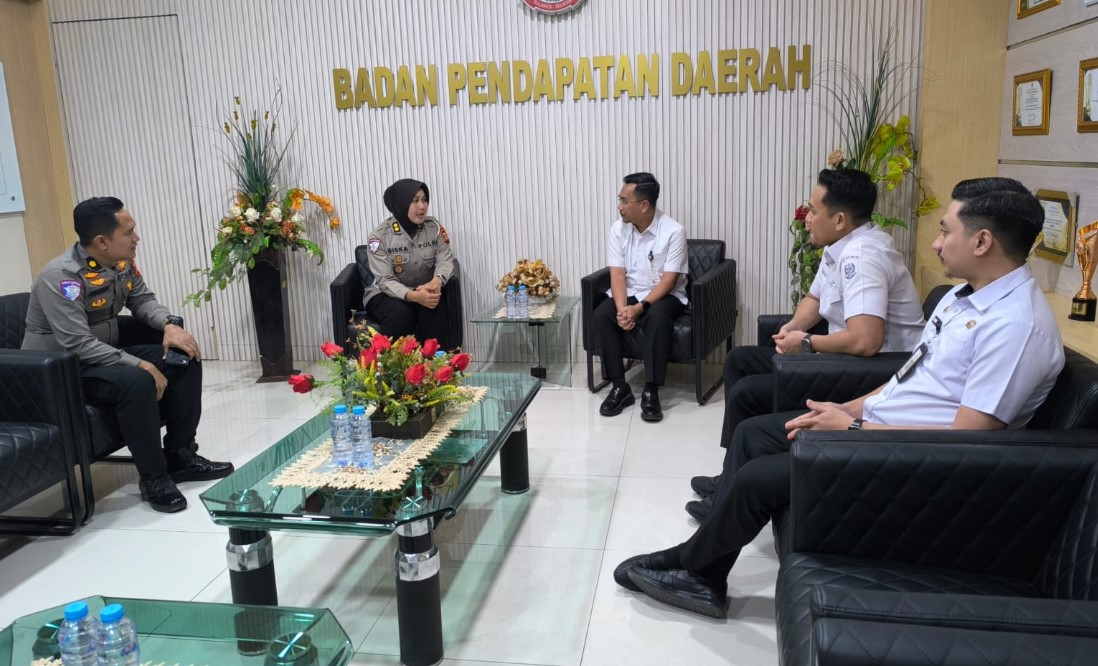 MAKASSAR – Kepala Badan Pendapatan Daerah (Bapenda) Sulawesi Selatan, Dr. H. Reza Faisal Saleh, S.Stp., M.M., didampingi Kepala Bidang Teknologi Sistem Informasi (TSI) Andi Satriady Sakka dan Pelaksana Tugas Kepala Bidang Pajak Daerah (PAD) N. Irvandi Thamrin, menerima kunjungan Kasubdit Registrasi dan Identifikasi (Regident) Direktorat Lalu Lintas Polda Sulsel, AKBP Siska, bersama Kepala Seksi STNK, Rabu, 13 Agustus 2025.