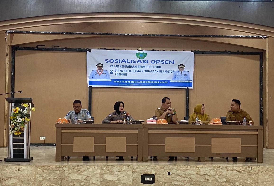 MAROS – Badan Pendapatan Daerah (Bapenda) Kabupaten Maros menggelar sosialisasi opsen Pajak Kendaraan Bermotor (PKB) dan opsen Biaya Balik Nama Kendaraan Bermotor (BBNKB) di Gedung Serbaguna, Senin (25/8/2025).